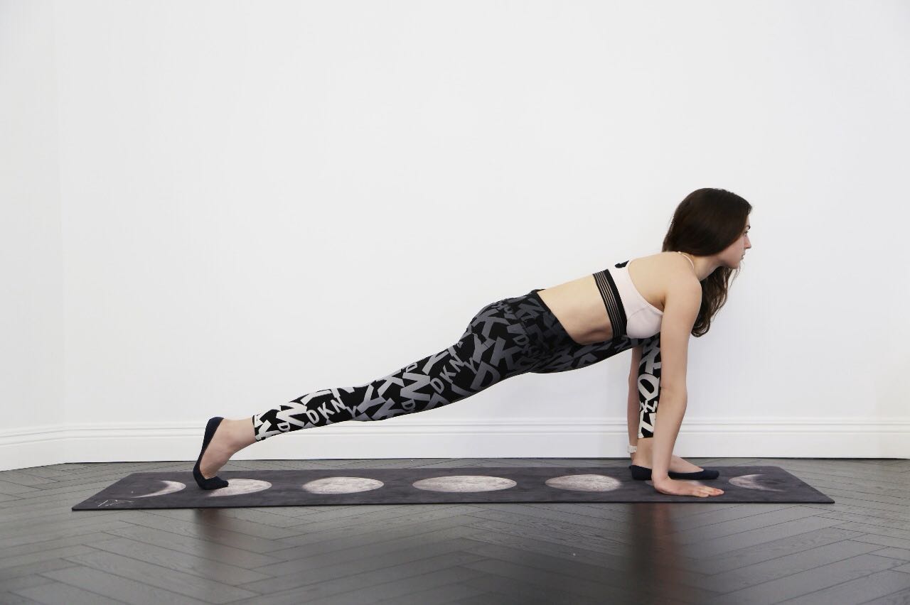 — Совершать небольшие покачивания тазом вниз, упираясь на кисти рук, стопу впереди стоящей ноги и носок сзади стоящей стопы. Покачивания выполнять с большой амплитудой и медленно — по 10-15 раз на каждую ногу.