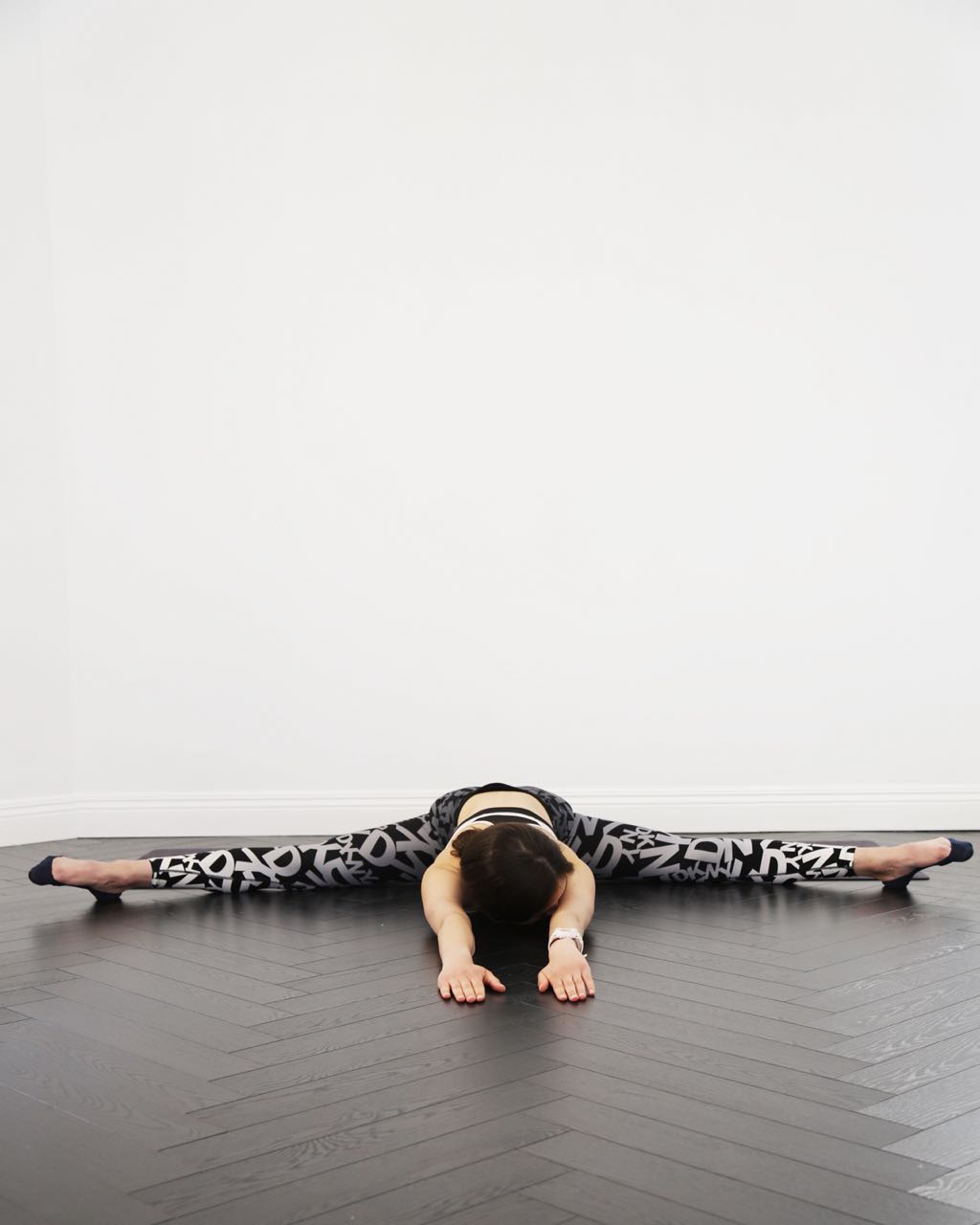 Эффект: разогрев и вытяжение мышц, участвующих в продольном шпагате.