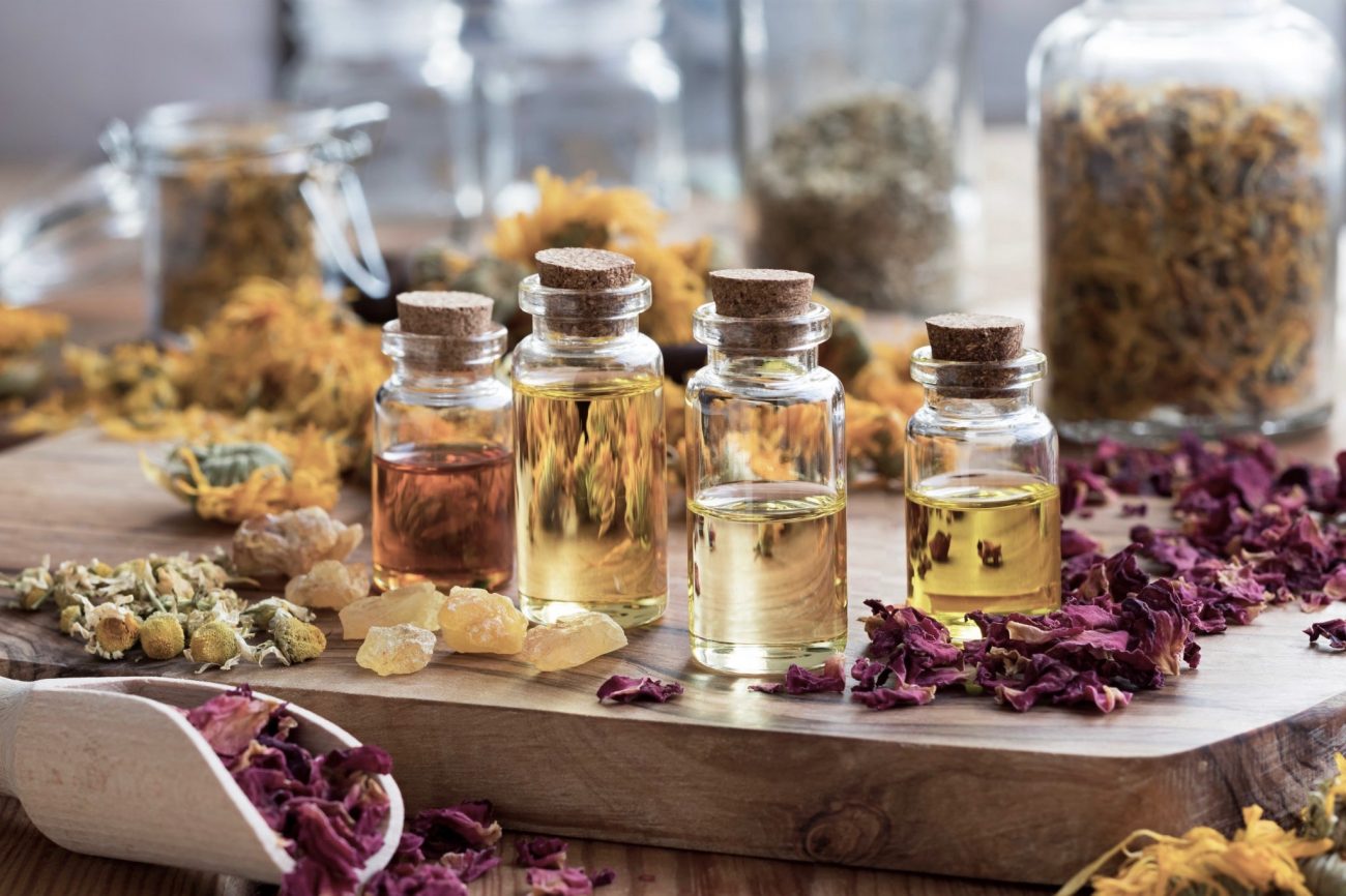 На 30 мл базового масла — 15 капель эфирного масла. Эфирные масла лучше всего смешивать в отдельной емкости, начиная с того масла, которого по количеству добавляемых капель меньше.