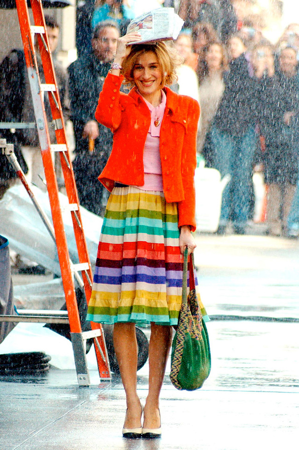 Полосатые вещи сопровождают Кэрри Брэдшоу на протяжении всего сериала: деловые костюмы в строгую тонкую полоску, уютные свитеры в широкую полоску и забавные юбки в яркие горизонтальные полосы.