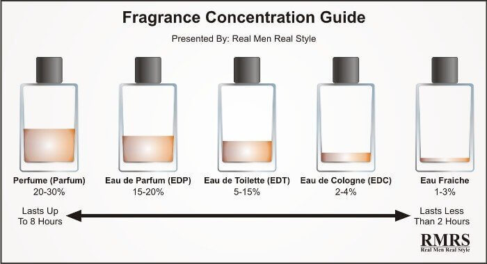 Посмотрите на картинку. Чем выше концентрация масел — тем больше сила аромата. Эта сила определяет, как долго аромат сохраняется на вашей коже.
