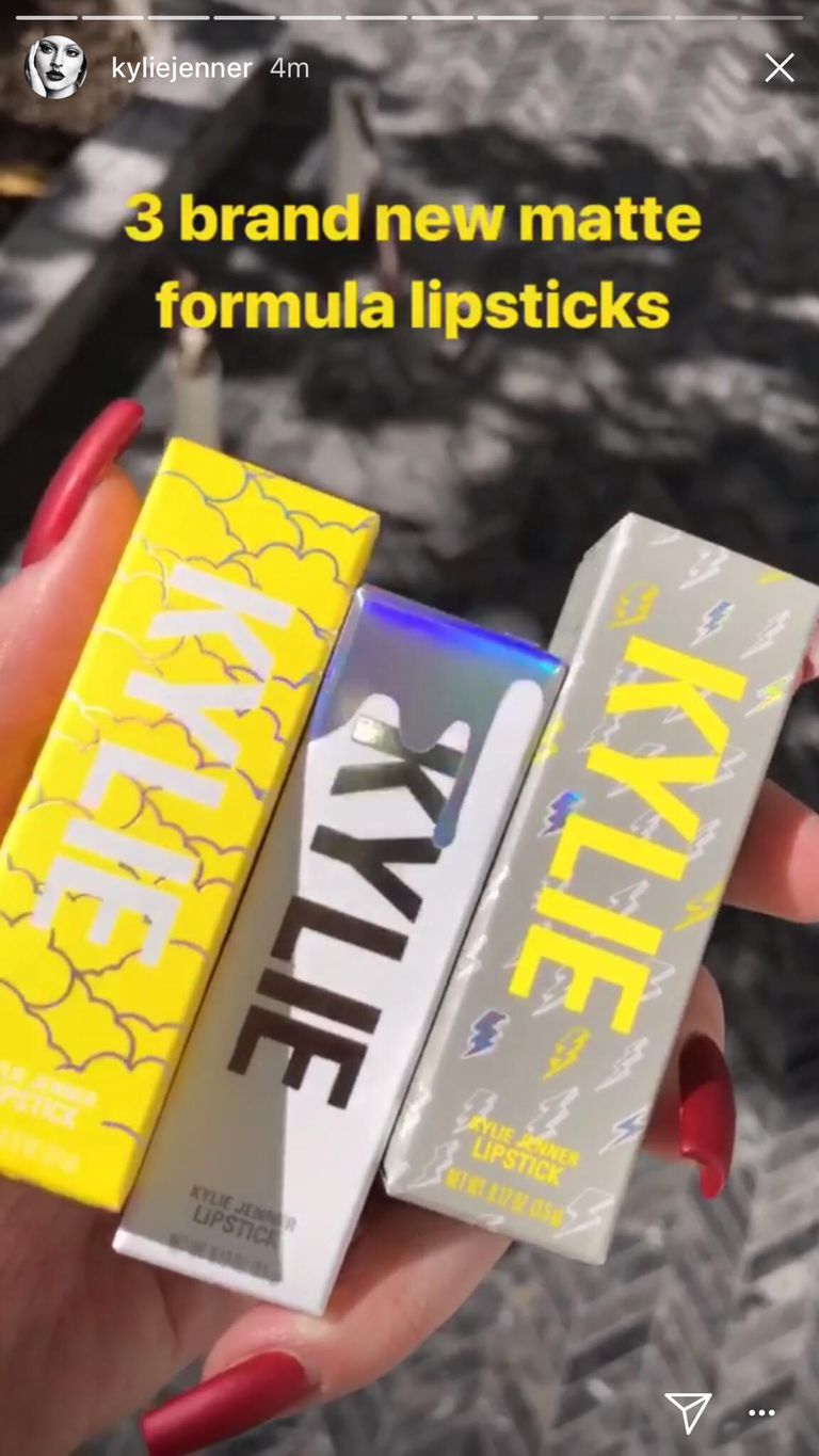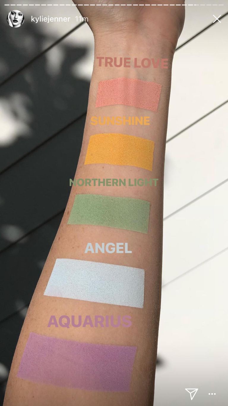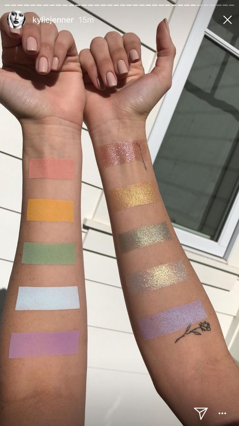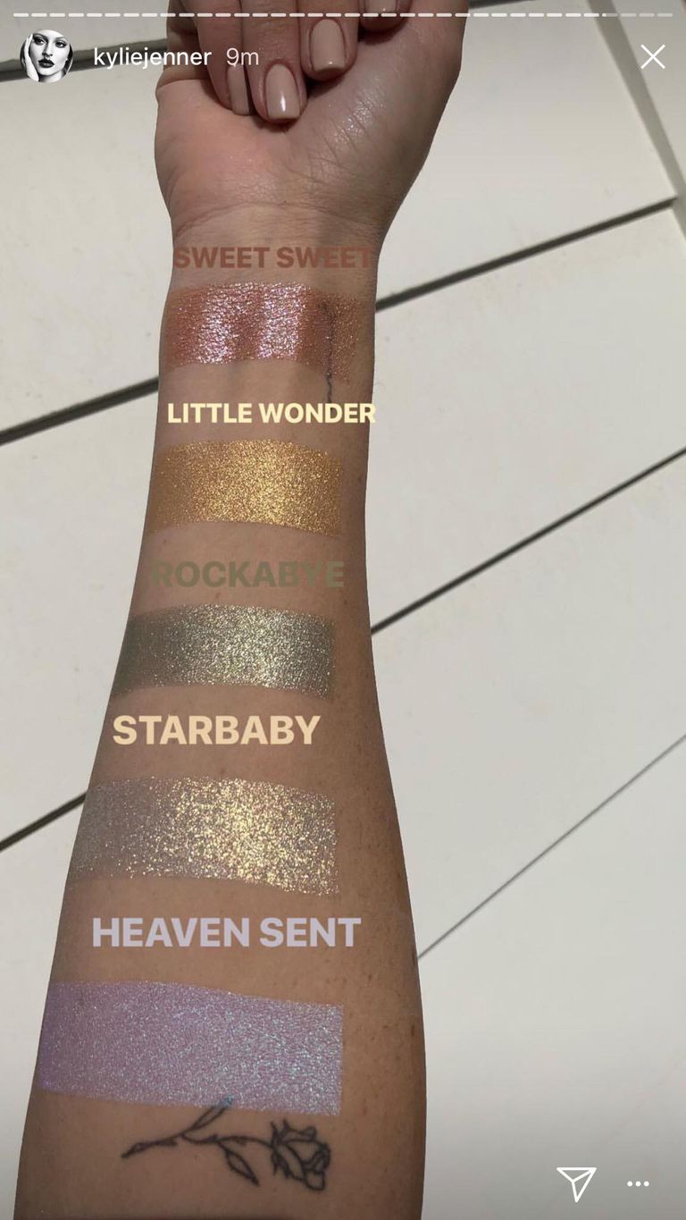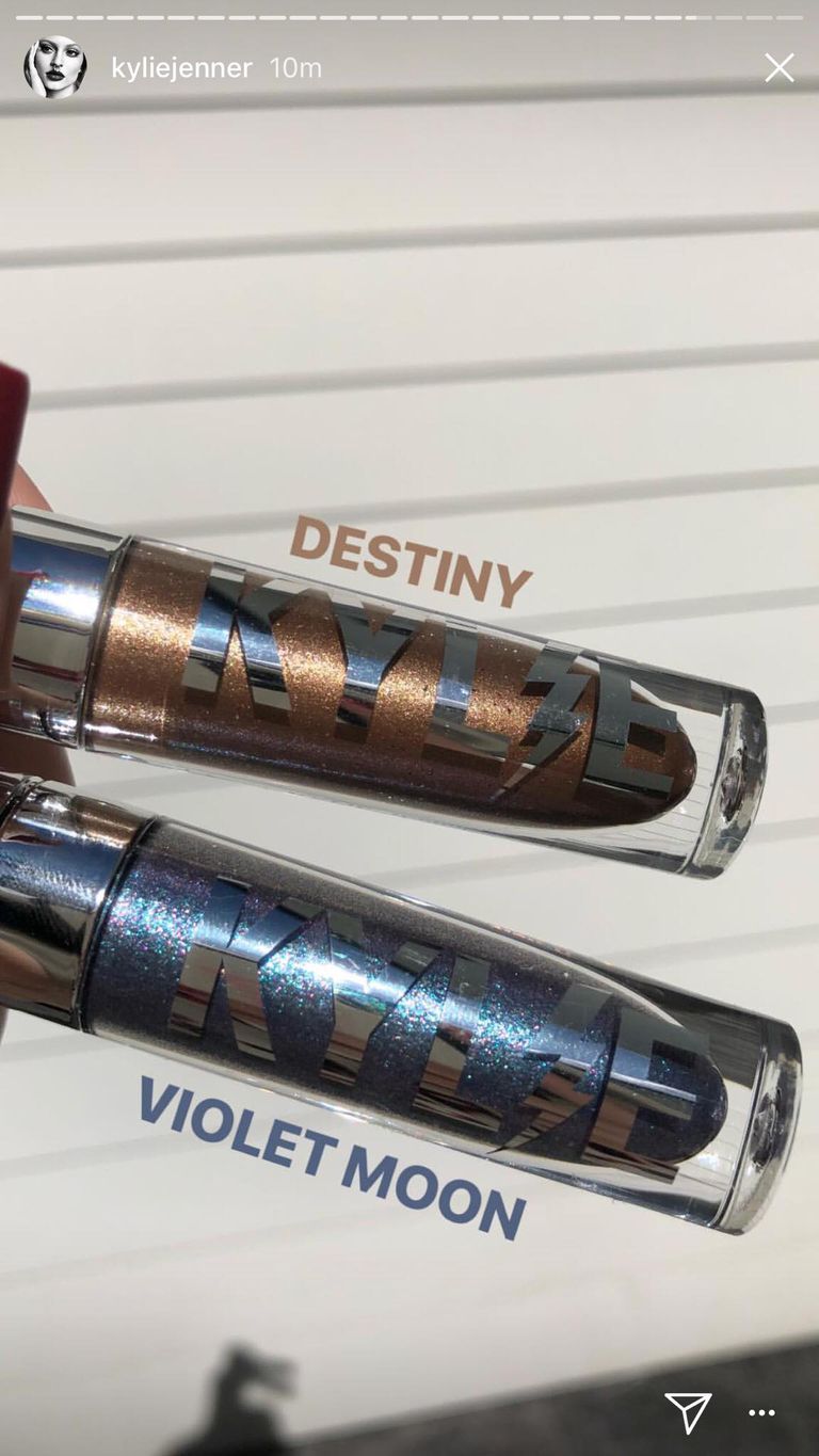 В Instagram Кайли Дженнер появились первые фото новой коллекции косметики, посвященной дочери Сторми. В нее войдут три новых оттенка помад, блеск для губ, тени для век, хайлайтеры и две палетки теней.