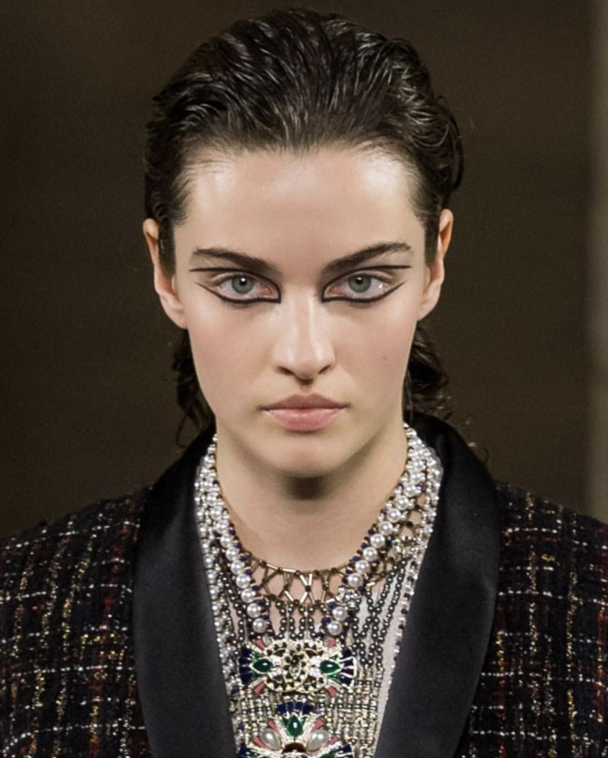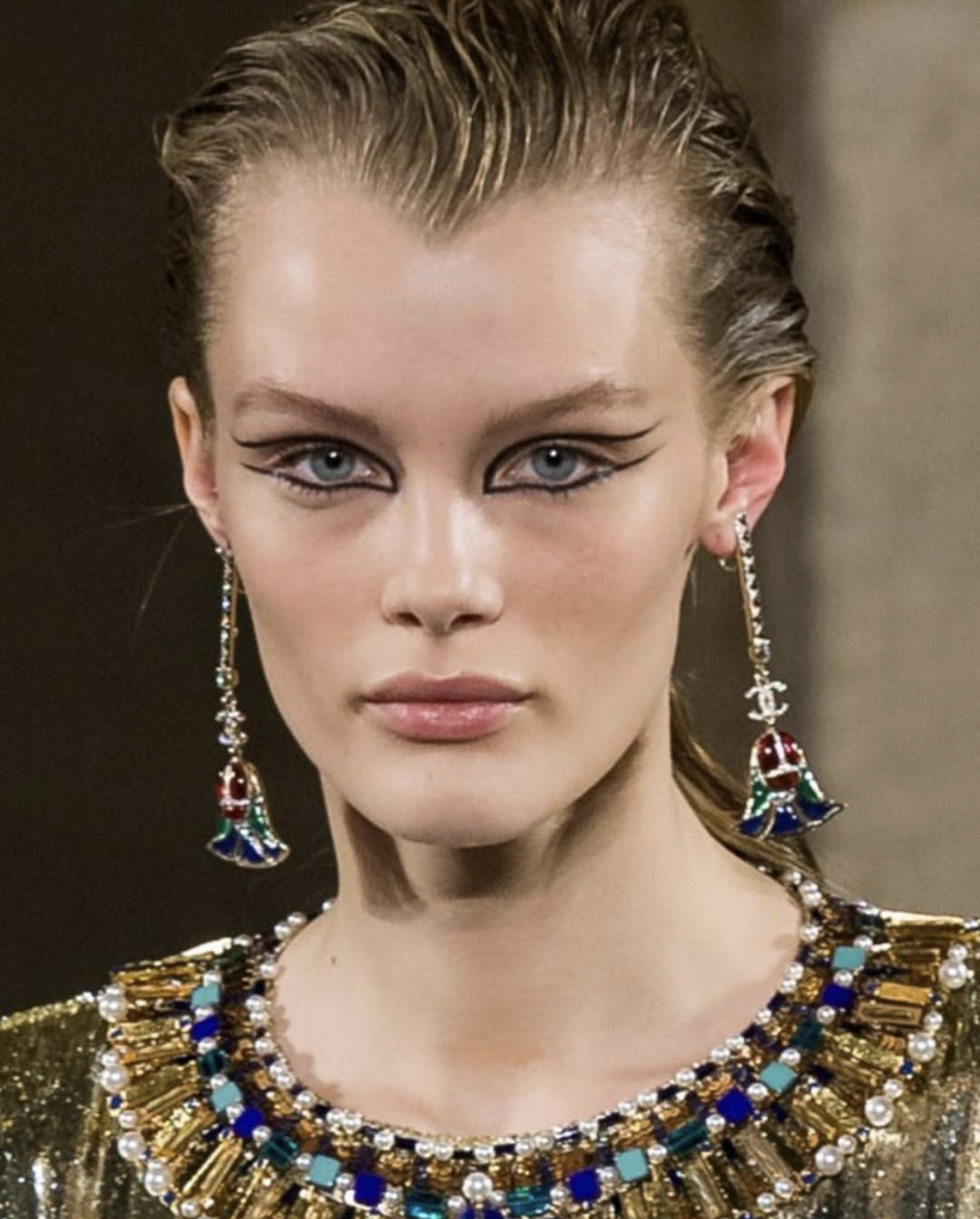 Вдохновляемся макияжем с показа Chanel Matiers d’Art и рисуем необычные египетские стрелки на новогоднюю вечеринку.