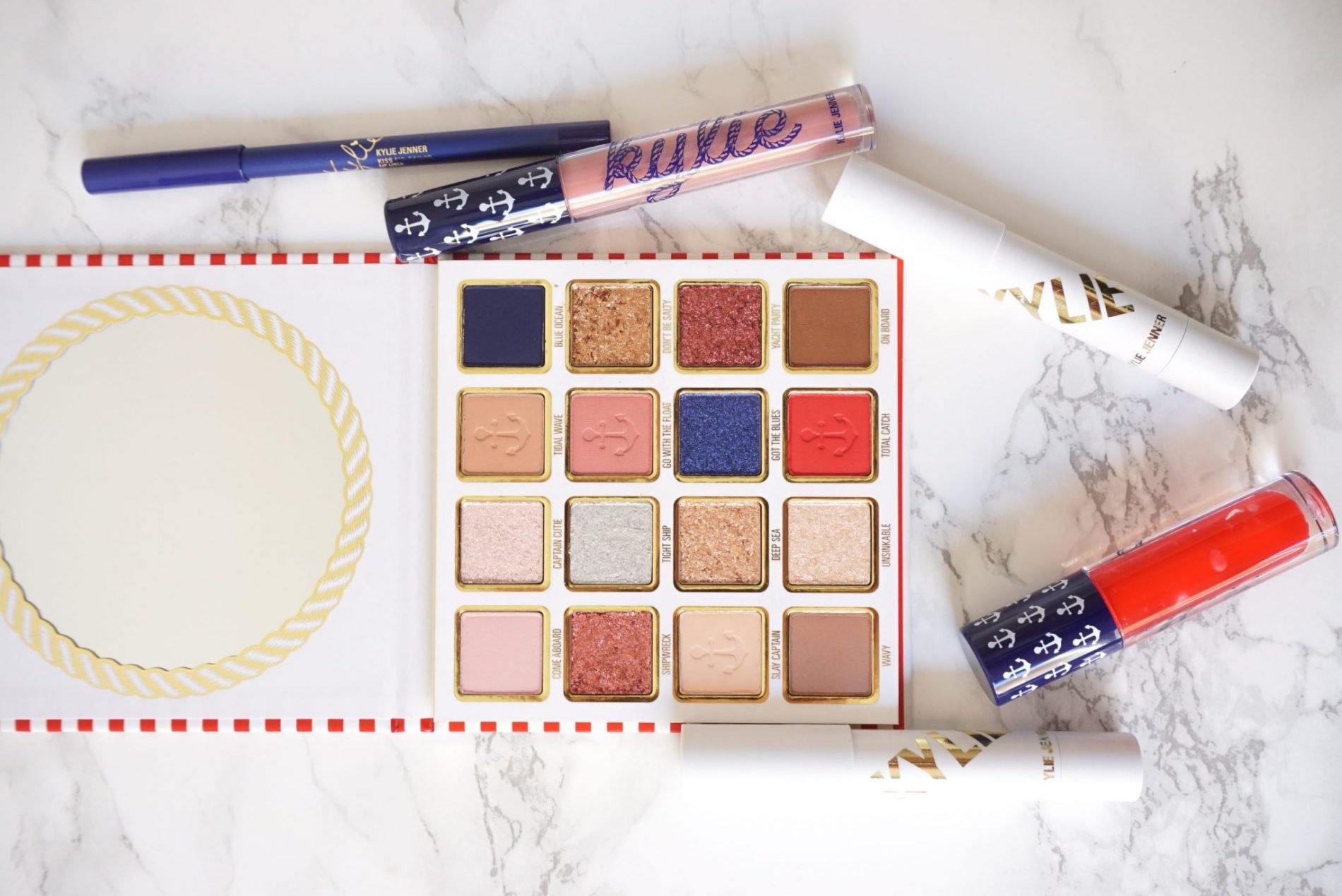 Бренд Kylie Cosmetics встречает осень с новой коллекцией Sailor Collection. Упаковки украшены якорями, красными и синими полосками, напоминающими морские силуэты и пляжные каникулы.