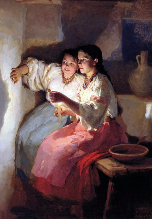 Поверья, нечистая сила и злые духи в народном сознании привлекали писателей и поэтов, например, в балладе «Светлана» В. А. Жуковского и в романе в стихах «Евгений Онегин» А. С. Пушкина читатель встречает девушек за гаданием.