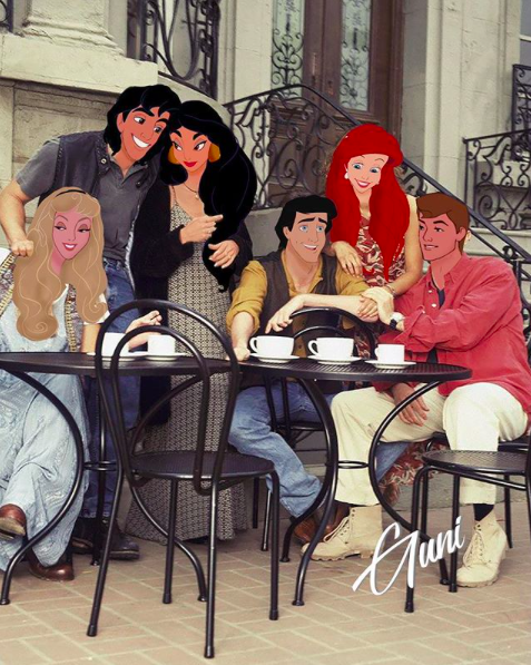 Также девушка создает композиции, где помимо мультфильмов Disney используются другие близкие художнице истории. Например, узнаваемый кадр из комедийного сериала «Друзья».