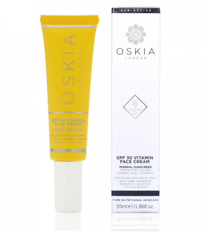 Oskia SPF 30 Vitamin Face Cream ( £58.00) – «витаминный» солнцезащитный крем для лица с SPF30 на минеральных фильтрах. Обещают легкую консистенцию. В составе ниацинамид, сера, гиалуроновая кислота, бакучиол, пантенол, пептиды, пробиотики, водоросли и много других полезных компонентов.