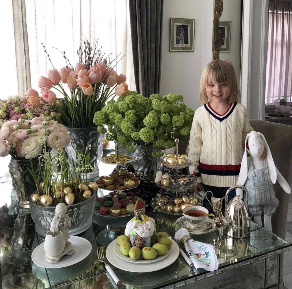 Вчера все православные отмечали светлый праздник — Пасху. Этот завтрак для Яны был сделан с особым усердием. Букеты цветов, раскрашенные яйца, кулич и любимый сыночек рядом.