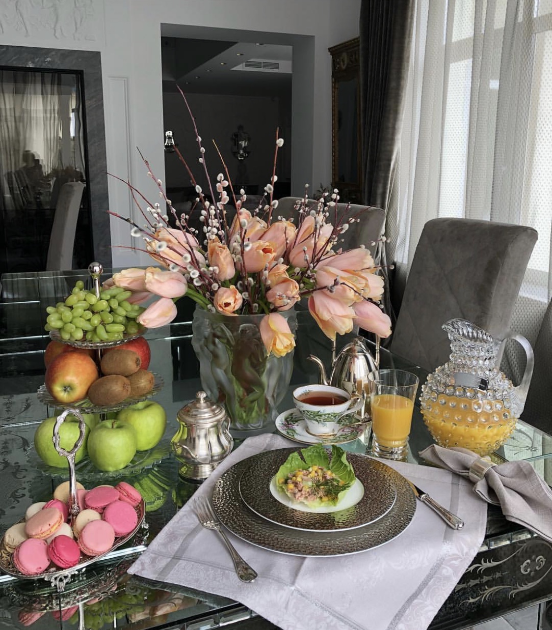 Каждое утро известный продюсер делится со своими подписчиками новой фотографией роскошного завтрака. Ежедневно Яне подают разнообразные блюда в дорогой посуде и создают необычную композицию из цветов и деликатесов.