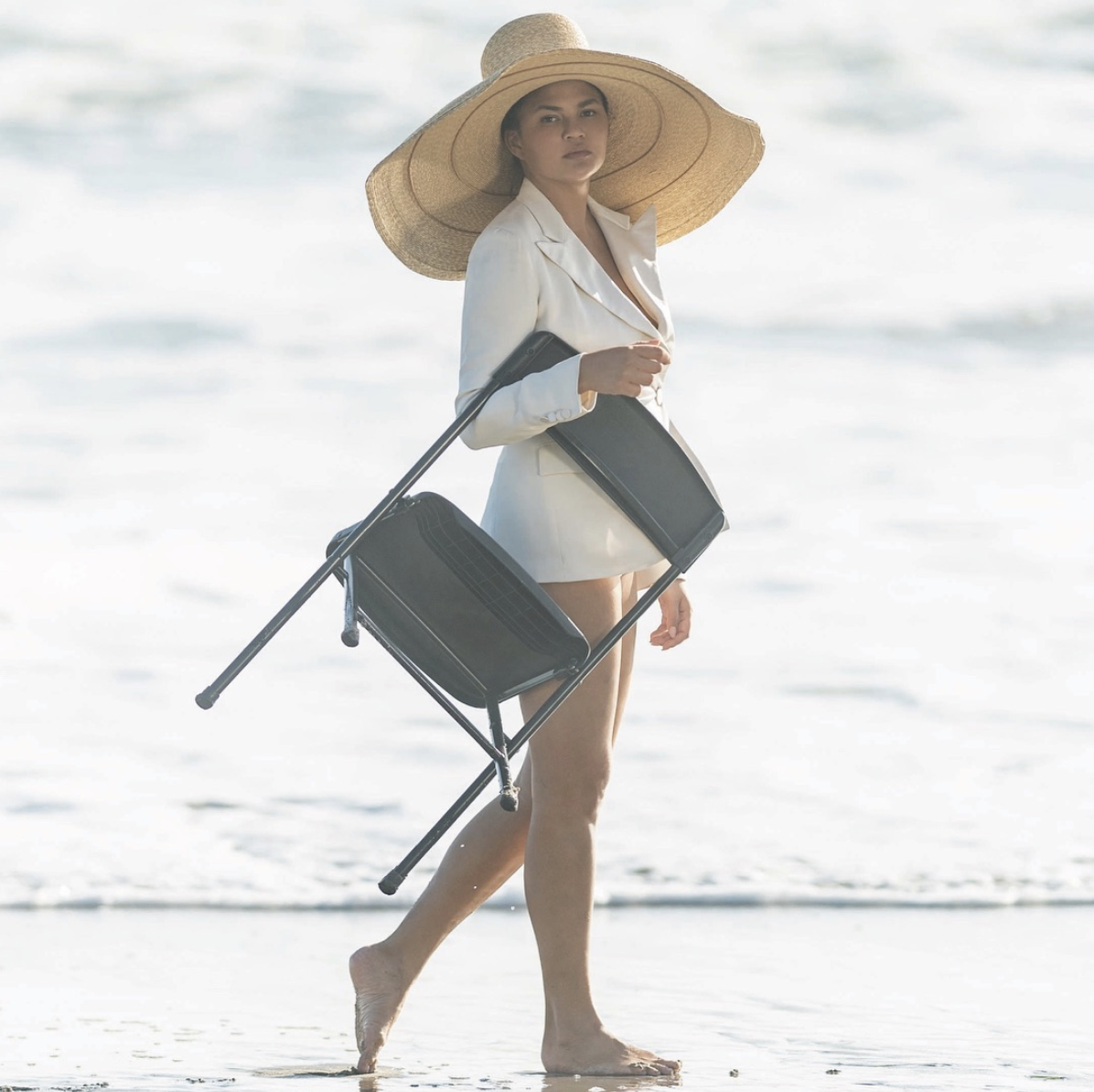 Съемки проходили на одном из пляжей Малибу, где Крисси смогла вдоволь насладиться морским воздухом и временной свободой от материнских обязанностей. Для фотосессии не были выбраны чересчур экстравагантные наряды. Наоборот, модель предстала в легкой полупрозрачной юбке от Диор, белой рубашке и модных в этом сезоне грубых ботинках. На снимках внутри журнала Крисси одета в белый пиджак из плотной ткани, белое бельё и широкополую шляпу, которая стала незаменимой частью каждой коллекции осень-зима 18/19. Все лишь для того, чтобы подчеркнуть легкость и счастливое настроение Крисси Тейген.