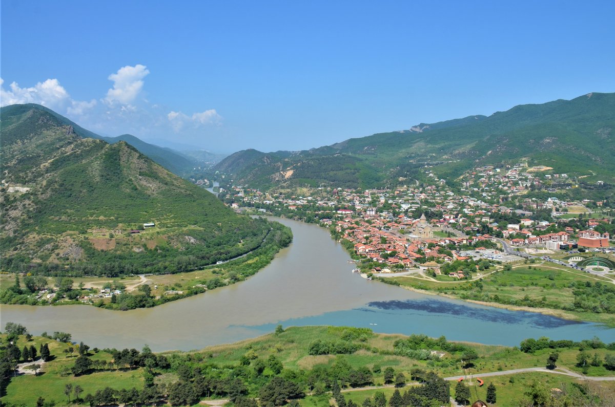 Именно со смотровой площадки рядом с этим монастырем вы осознаете строчки М. Ю. Лермонтова про слияние вод Арагвы и Куры. Красота неимоверная: из-за разных плотностей воды и концентрации соли в водах реки, сливаясь, образовывают четкую границу.