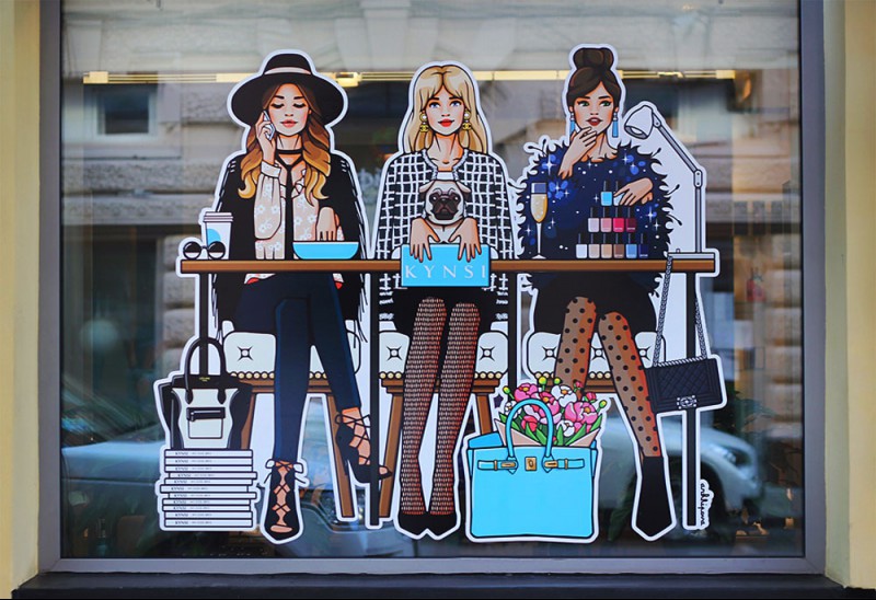 На самом деле, вы наверняка уже знакомы с работами Дины, если хотя бы раз гуляли по Петровке мимо салона красоты KYNSI, слышали о магазине Portal или заглядывали в H&M. Вы точно видели аксессуары и одежду, витрины магазинов и обложки журналов, на которых изображены милые девочки-куклы в самых разных ипостасях: опаздывающие, стервозные, праздничные, домашние и деловые.