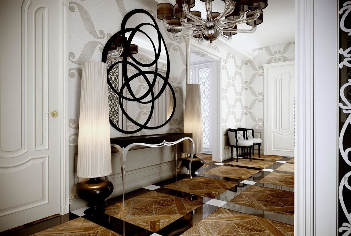 Ар-деко блестит и сияет: лак и глянцевая краска, стекло и зеркала, полированное дерево и металл. Нет ничего более характерного для этого интерьера, чем игра фактур и света, отраженного от блестящих поверхностей.