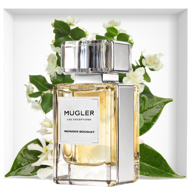 Парфюмерная вода Mugler Les Exceptions Wonder Bouquet — аромат является девятым по счету в серии Les Exceptions. Аромат Wonder Bouquet воплощает в себе юность и невинность. Эта парфюмерная вода уносит нас на свадьбу, где невеста идет к алтарю и несет нежный букет, которые олицетворяет любовь. В парфюмерную воду добавлен арабский жасмин, который подчеркивает женскую чувственность и нежность. Совместно с белыми цветами звучат нотки свежей французской выпечки, они идеально сочетаются друг с другом. Аромат французского дома Mugler имеет средний шлейф и длительную стойкость.