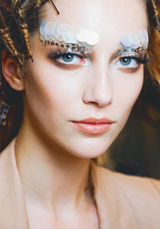 Брови, стразы и пайетки.