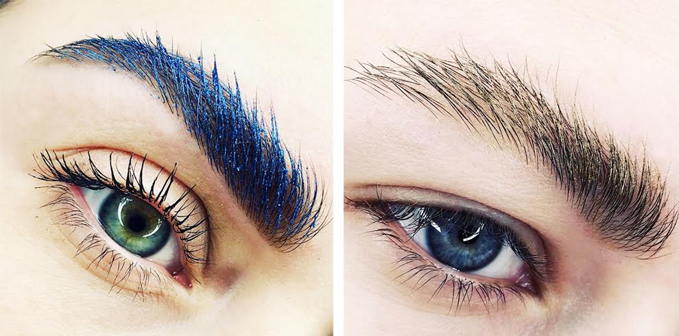 Мода на оттенки металлик в макияже перекинулась и на брови. Так, совсем недавно в преддверии Рождества Dior выпустили DIORSHOW BOLD BROW Holiday 2017 limited edition — высокопигментированный золотой гель для бровей. В обновленных постоянных коллекциях некоторых бюджетных косметических фирм также можно найти разноцветные фиксирующие туши с металлическим финишем. Хочешь создать стильный образ? Густо прокрась волоски, чтобы полностью перекрыть их пигмент. Для более нежного взгляда слегка «припороши» брови цветной блестящей тушью.