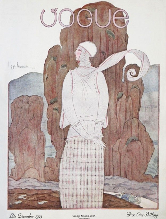 Vogue первой четверти XX века демонстрирует читателям недоступную и странную девушку, идеал того времени. Городской пейзаж на обложке 1917 года и фантазийный морской 1923 года фактически не меняют образ модели, девушка-загадка остается тайной при любых обстоятельствах, но не забывает при этом быть на пике моды: короткая стрижка, шляпка-колокольчик, низкая талия платья и меха.