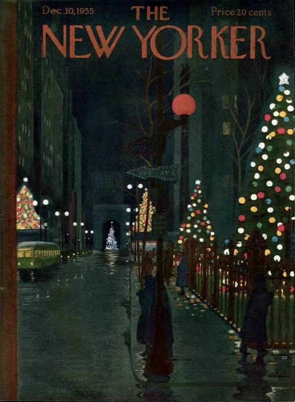 Читатель The New Yorker узнавал на обложках сцены из жизни: улицы города, светящиеся в сумерках окна домов и огни. Однако и здесь остается место для сказки: то там, то здесь появляются символы Рождества: падающий снег, наряженная ёлка или снеговик.