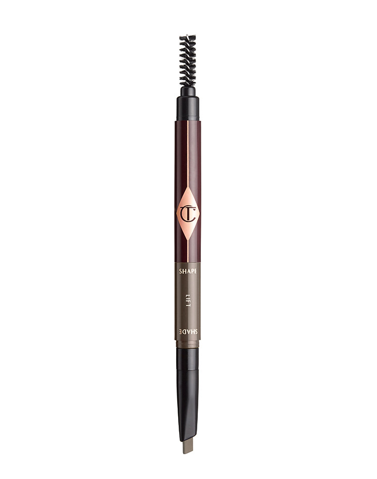 Когда тон лица доведен до идеала, а темные круги под глазами скрыты за консилером, приступаем к бровям. Используя карандаш для бровей Brow Lift, легкими движениями прокрасьте брови, после чего тщательно причешите щеточкой, для того, чтобы растушевать продукт и сделать макияж более натуральным. После этого зафиксируйте брови специальным гелем от Victoria’s Secret Brow or Never.