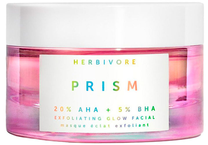 У бренда Herbivore вышло очередное интересное средство с кислотами — маска для лица Herbivore Prism 20% AHA + 5% BHA Exfoliating Glow Facial. У средства приятная текстура желе, а в составе имеются 20% AHA-кислот (гликолевая, винная, яблочная, молочная) и 5% BHA-кислот.